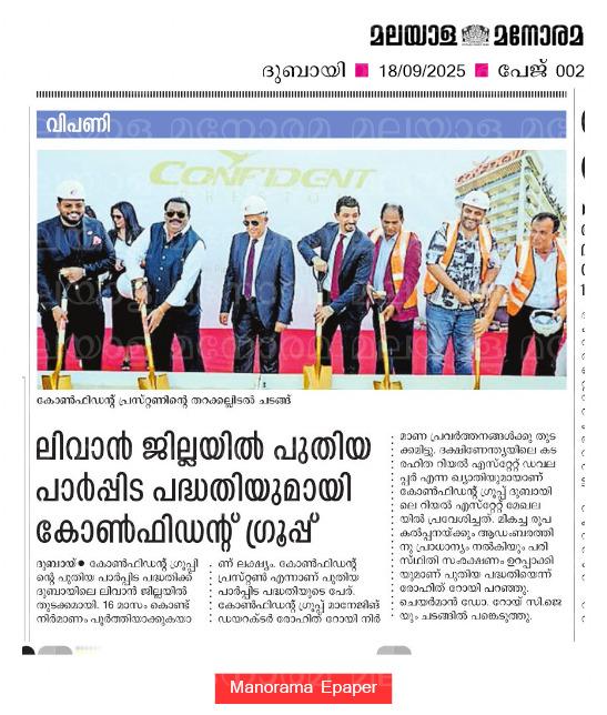 Dubai’s Liwan district witnessed a remarkable milestone as Confident Group, one of South India’s leading real estate developers, laid the foundation stone for its newest residential venture, Confident Preston. This landmark project reflects the developer’s vision to bring world-class living spaces to Dubai while staying true to its reputation as a debt-free and reliable builder.
