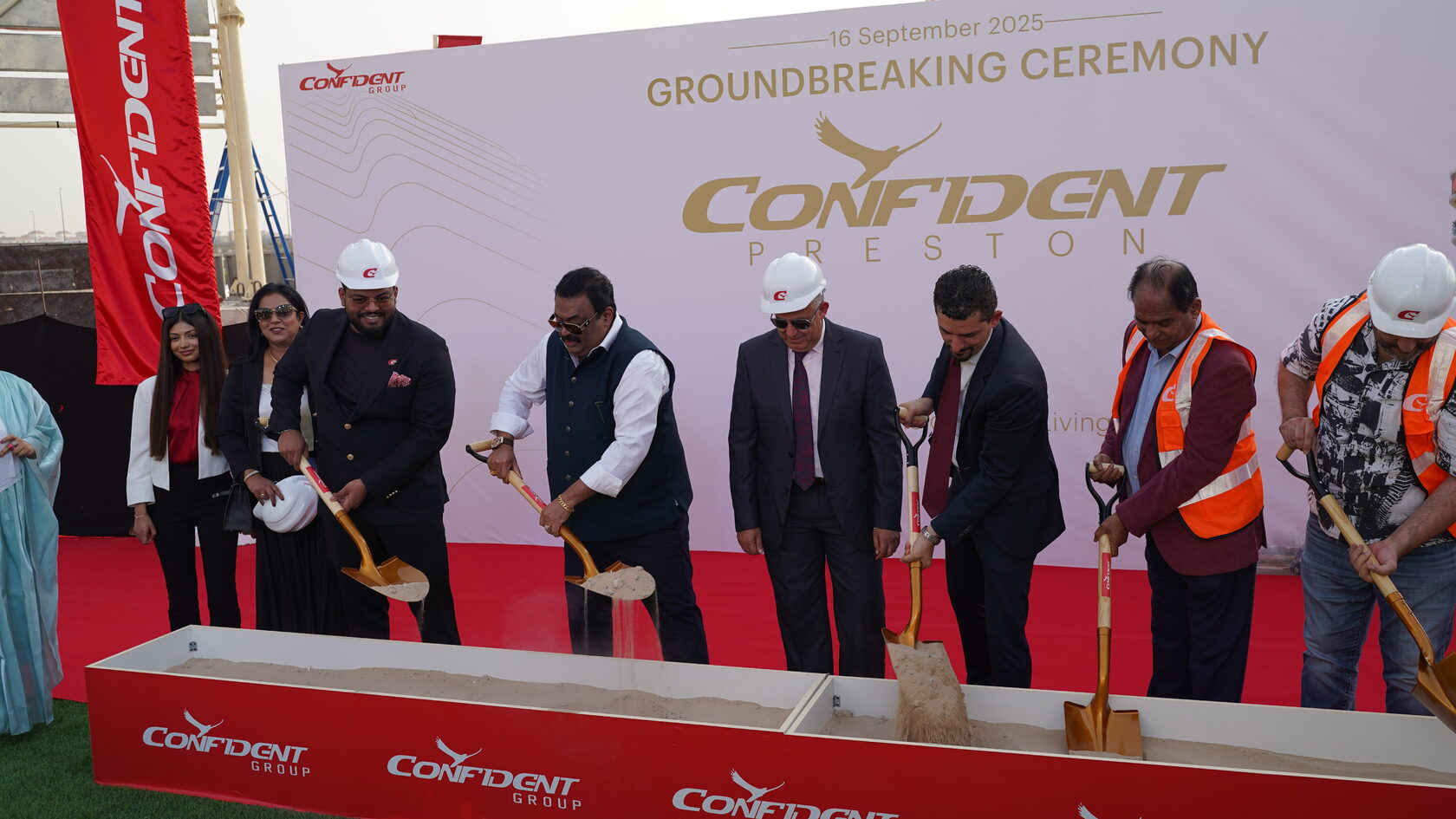 Dubai: The foundation stone for Confident Preston, a landmark project by South India’s leading real estate developers, Confident Group, was laid in Liwan, Dubai. The construction works were officially inaugurated by Rohit Roy, Managing Director of Confident Group Dubai. The group’s Chairman, Dr. C.J. Roy, also graced the occasion.